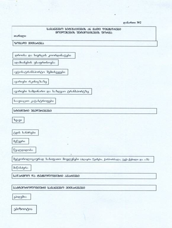 ბ) საგანგებო სიტუაციების ან მათი წინმსწრები მოვლენების შეტყობინების ფორმა (დანართი №2);