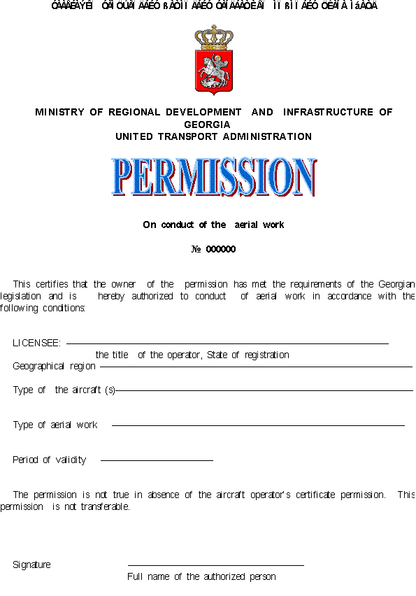 ბ) საავიაციო სამუშაოების წარმოების სანებართვო მოწმობის ფორმა (დანართი №2);