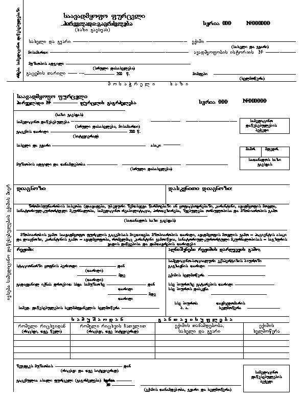 ბ) გრაფაში – “გაიცა”, გაცემის დღე და თვე აღინიშნება სიტყვებით;