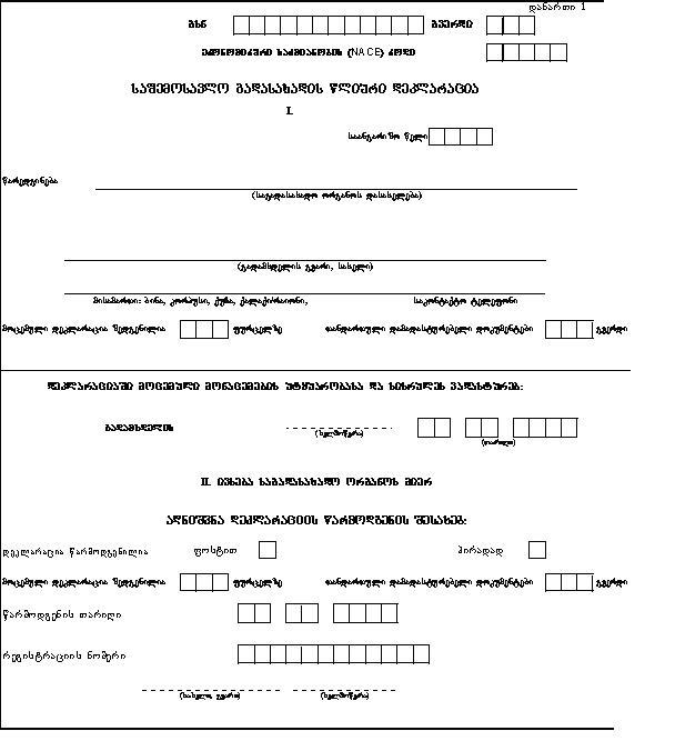 7. დეკლარაციის შევსება ხდება გადამხდელის მიერ, გარდა იმ განაყოფისა, რომელიც ივსება საგადასახადო ორგანოს მიერ.