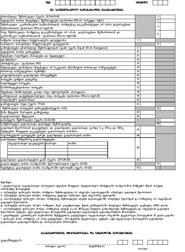 4. დეკლარაციის III განაყოფის უჯრებში შეიტანება: