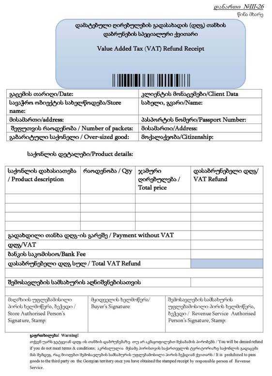 | დოკუმენტის მიმღები | საქართველოს ფინანსთა მინისტრი |