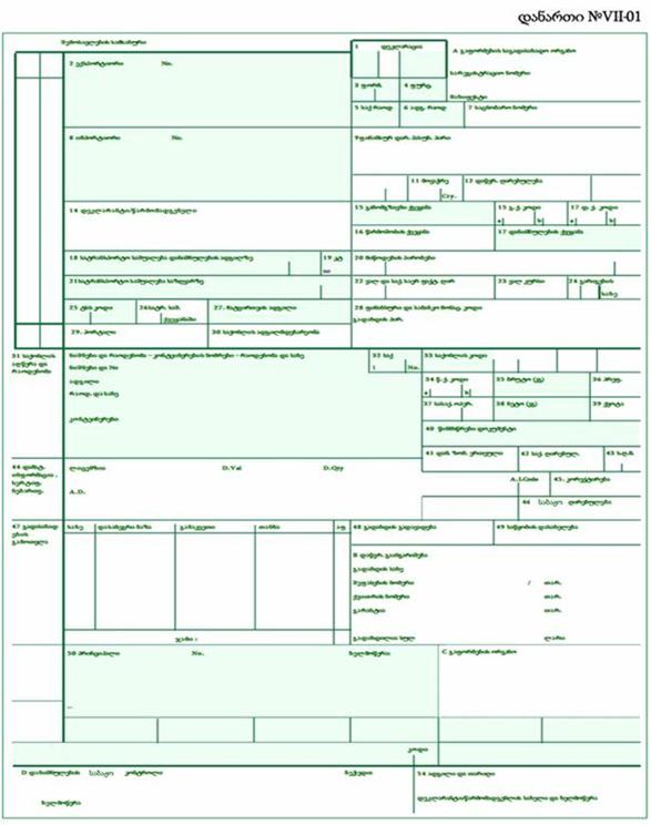 გ) სხვა საქონელზე � ინფორმაცია საქონლისა და სატრანსპორტო საშუალების შესახებ (დანართი №I�01).