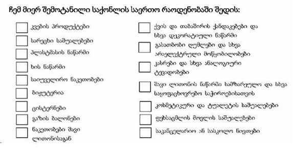 | იმპორტის გადასახადი | ���������������������������������������������������������������������������������������� ����������������������������� | |