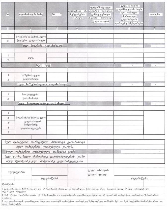 გადასახადის გადამხდელის ხელმოწერა -------------------------- ----------