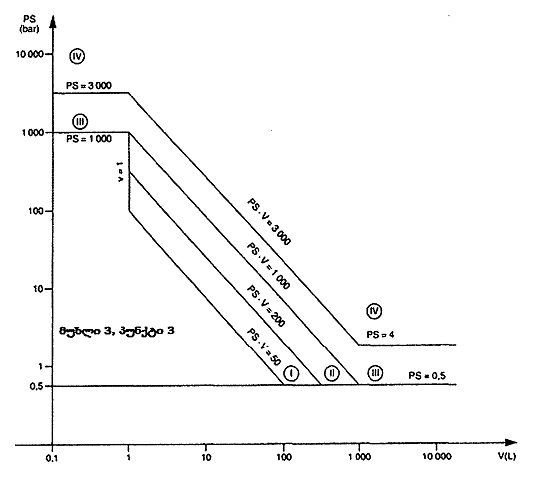 დიაგრამა 5 ტექნიკური რეგლამენტის მუხლი 3-ის, 1.2 პუნქტში მითითებული წნევის ქვეშ მომუშავე მოწყობილობა