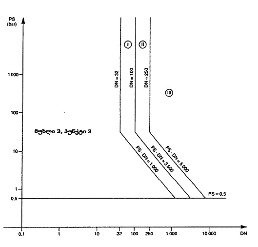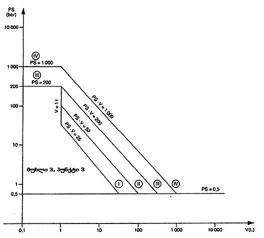 დიაგრამა 5 ტექნიკური რეგლამენტის მუხლი 3-ის, 1.2 პუნქტში მითითებული წნევის ქვეშ მომუშავე მოწყობილობა