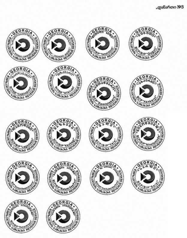 1. შემოსავლების სამსახურის საბაჟო დეპარტამენტის სტრუქტურაში გამოსაყენებელი მრგვალი ბეჭდების და შტამპების ფორმები განისაზღვროს №3 დანართის შესაბამისად.