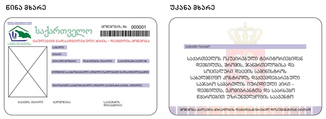 ,,5. დევნილის მოწმობის პირველ გვერდზე, ზედა მარცხენა ნაწილში განთავსებულია სააგენტოს ლოგო, ლოგოს მარჯვენა მხარეს წარწერა ქართულ ენაზე: „საქართველო“, ხოლო ზედა მარჯვენა ნაწილში – დევნილის მოწმობის ნომერი და შტრიხ-კოდი. აღნიშნული მონაცემების ქვემოთ განთავსებულია წარწერა ქართულ ენაზე: „იძულებით გადაადგილებული პირის – დევნილის მოწმობა“. პირველ გვერდზე განთავსებულია დევნილის სტატუსის მქონე პირის ციფრული ფოტოსურათი, დევნილის ელექტრონული ხელმოწერა და მოცემულია შემდეგი ინფორმაცია: დევნილის მოწმობის მფლობელის სახელი და გვარი, დაბადების თარიღი, პირადი ნომერი, სარეგისტრაციო ნომერი, მუდმივი საცხოვრებელი ადგილი იძულებით გადაადგილებამდე და დროებითი საცხოვრებელი ადგილი (რეგისტრაციის ადგილი). დევნილის მოწმობის მარჯვენა ქვემო ნაწილში განთავსებულია სააგენტოს დირექტორის ხელმოწერა, მარცხენა ქვემო ნაწილში – გაცემის თარიღი, ხოლო ქვემო შუა ნაწილში დევნილის პირადი ელექრონული ხელმოწერა. 6. დევნილის მოწმობის მეორე გვერდზე ცენტრში განთავსებულია საქართელოს მცირე გერბი და წარწერა „საქართელოს ოკუპირებული ტერიტორიებიდან დევნილთა, შრომის, ჯანმრთელობისა და სოციალური დაცვის სამინისტროს სახელმწიფო კონტროლს დაქვემდებარებული საჯარო სამართლის იურიდიული პირი – დევნილთა, ეკომიგრანტთა და საარსებო წყაროებით უზრუნველყოფის სააგენტო“, ხოლო ქვემო ნაწილში განთავსებულია წარწერა: „მოწმობა ძალაშია პირადობის დამადასტურებელ დოკუმენტთან ერთად“ სხვადასხვა ფერის და ზომის ოთხკუთხედი გეომეტრიული ფიგურების ფონზე.“; |