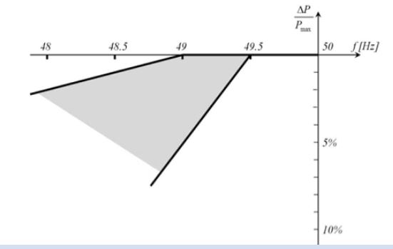ნახაზი 1. სიმძლავრის მაქსიმალური დასაშვები შემცირება სიხშირის ვარდნით