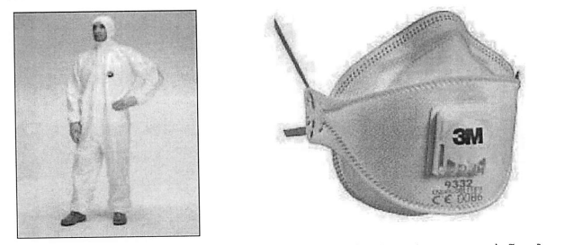 სურათი 1: მთლიანი კომბინეზონი, სურათი 2: რესპირატორული დაცვის ნიღაბი, ერთმხრივი, ზეთგამძლე მსუბუქი, FFP2ანr 3