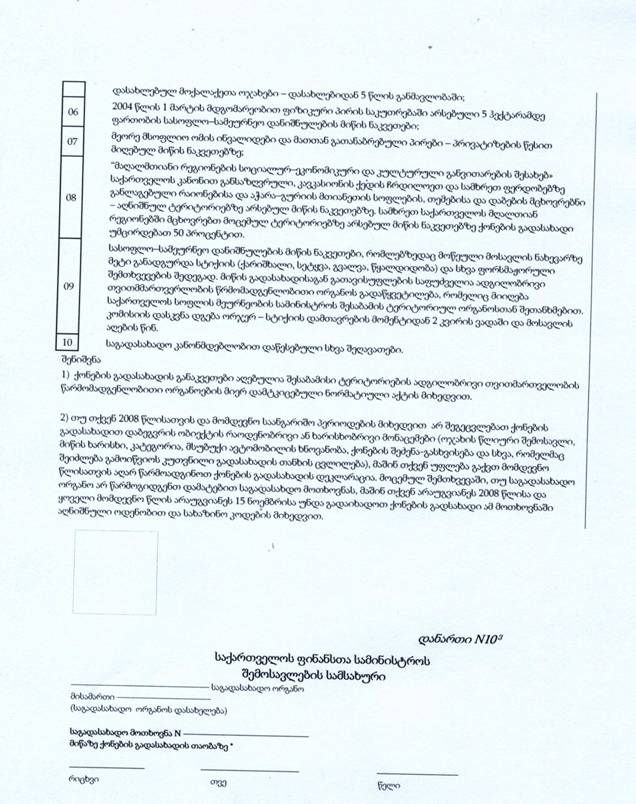 | დოკუმენტის მიმღები | საქართველოს ფინანსთა მინისტრი |