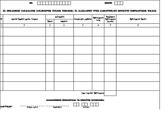 6. მე-7 სვეტში „საკუთრებაში ყოფნის პერიოდი”– შეიტანება საგადასახადო წლის განმავლობაში უძრავი ქონების გადამხდელის საკუთრებაში ყოფნის ფაქტობრივი პერიოდი გამოსახული თვეებში.