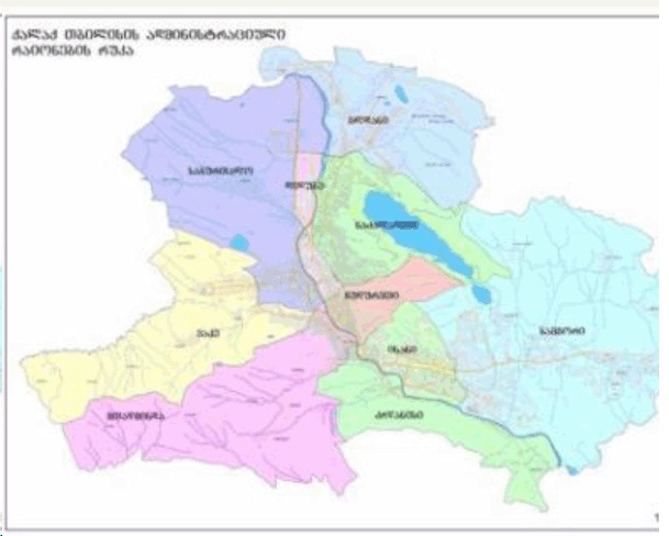 ქ. თბილისის მუნიციპალიტეტის ადმინისტრაციული ერთეულების - რაიონების საზღვრების რუკა