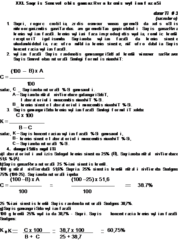 დ) ქვემოთ მოყვანილია გაანგარიშებები ძირითადი ხსნარის რაოდენობებისათვის, რომელიც საჭიროა 0,2 – 10%-იანი ქლორიანი კირის მუშა ხსნარების მოსამზადებლად.