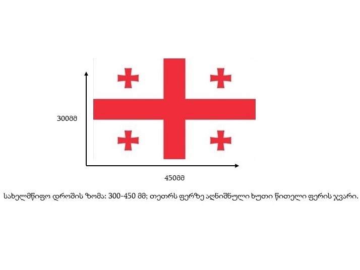 მუხლი 9. ხომალდის ამოსაცნობი ნიშანის ზომა, ფორმა და ფერი 1. წრეში ჩასმული ჰერალდიკური ჯვრის სიმაღლე: 300, 600, 800 და 1000 მმ, ჩარჩოს სიგანე დამოკიდებულია ჯვრის ზომაზე და მითითებულია ცხრილში (დანართი №13). 2. წრეში ჩასმული ჰერალდიკური ჯვარი ხომალდის გარე ზედაპირზე აღინიშნება სახელმწიფო ფერში. სხვა შემთხვევაში წრეში ჩასმული ჰერალდიკური ჯვრის ფერი (შავი, თეთრი ან ცისფერი ფერით, ხომალდის არსებული ფერის ან თეთრ ფონზე შემოფარგლული შავი, თეთრი ან ცისფერი ფერის ზოლით) განისაზღვროს სამინისტროსთან შეთანხმებით, ამ წესის მე-7 მუხლის მე-4 პუნქტის თანახმად, მფლობელის მიერ გაკეთებული განაცხადის საფუძველზე. 3. საბორტო ნომრის ციფრების სიმაღლე უნდა იყოს 300-1000 მმ. 4. თითოეული საბორტო ნომრის ციფრის სიგანე (გარდა ციფრისა „1“ (ერთი) და ასო „I“ (აი)) და ტირეს სიგრძე შეადგენს სიმბოლოს სიმაღლის 2/3 (ორ მესამედს), ხოლო „M“ (ემი) და „W“ (დაბლიუ) ასოების შემთხვევაში შეიძლება იყოს სიმაღლის ტოლი. 5. ყოველი საბორტო ნომერი სრულდება უწყვეტი ხაზით, ხაზის სისქე შეადგენს სიმბოლოს სიმაღლის ერთ მეექვსედს (1/6). 6. საბორტო ნომერის ყოველი საბორტო სიმბოლო წინა სიმბოლოსაგან განცალკევდება მანძილით, რომელიც შეადგენს სიმბოლოს სიგანის ერთ მეოთხედს (1/4). ასეთ შემთხვევაში ტირე ითვლება, როგორც ცალკე სიმბოლო. 7. ხომალდზე დასატანი საბორტო ნომრების, ციფრების და ასოების ფერები განისაზღვროს, სამინისტროსთან შეთანხმებით, ამ წესის მე-7 მუხლის მე-4 პუნქტის თანახმად, მფლობელის მიერ გაკეთბული განაცხადის საფუძველზე. 8. სახელმწიფო დროშის ზომა: 300-450 მმ; თეთრ ფერზე აღნიშნული ხუთი წითელი ფერის ჯვარი (დანართი №13.1). 9. დამატებითი ამოსაცნობი ნიშნების ხომალდზე დატანა ზომა და ფერი განისაზღვროს მფლობელის განაცხადის საფუძველზე, სამინისტროსთან შეთანხმებით (დანართი №14). 10. ზოლები კარგად უნდა ჩანდეს და არ უნდა ჩრდილავდეს ამოსაცნობ ნიშნებს. ზოლებს შორის მანძილი უნდა შეადგენდეს ზოლის სიგანის ნახევარს. ზოლები მუქ ფონზე უნდა იყოს ღია ფერის, ღია ფონზე მუქი ფერის. 11. ხომალდებზე ამოსაცნობი ნიშანი დაიტანება წყალმედეგი საღებავით ან სხვა ისეთი საშუალებით, რომელიც უზრუნველყოფს დატანილი ნიშნის მდგრადობას და ატმოსფერული პირობების მოქმედების შედეგად ფერის უცვლელობას. 12. დამატებითი ამოსაცნობი ნიშანი (ზოლები) დაიტანება საღებავით ან/და სხვა ისეთი საშუალებით, რომელიც უზრუნველყოფს დატანილი ნიშნის მდგრადობას, არ გააფუჭებს ხომალდის ლაქ-საღებავის საფარს და მისი მოშორება მოხდება ადვილად. 13. ამოსაცნობი ნიშანი ფერით მკვეთრად უნდა გამოირჩეოდეს დატანის ზე