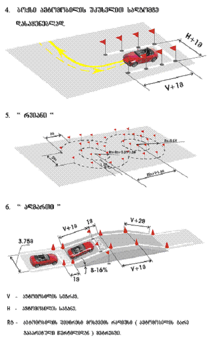 2. მძღოლობის კანდიდატს უნდა შეეძლოს შემდეგი მანევრების შესრულება:
